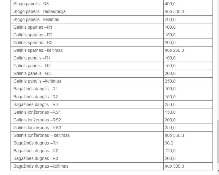 Kėbulo detalių keitimo ir smulkaus lyginimo darbai.