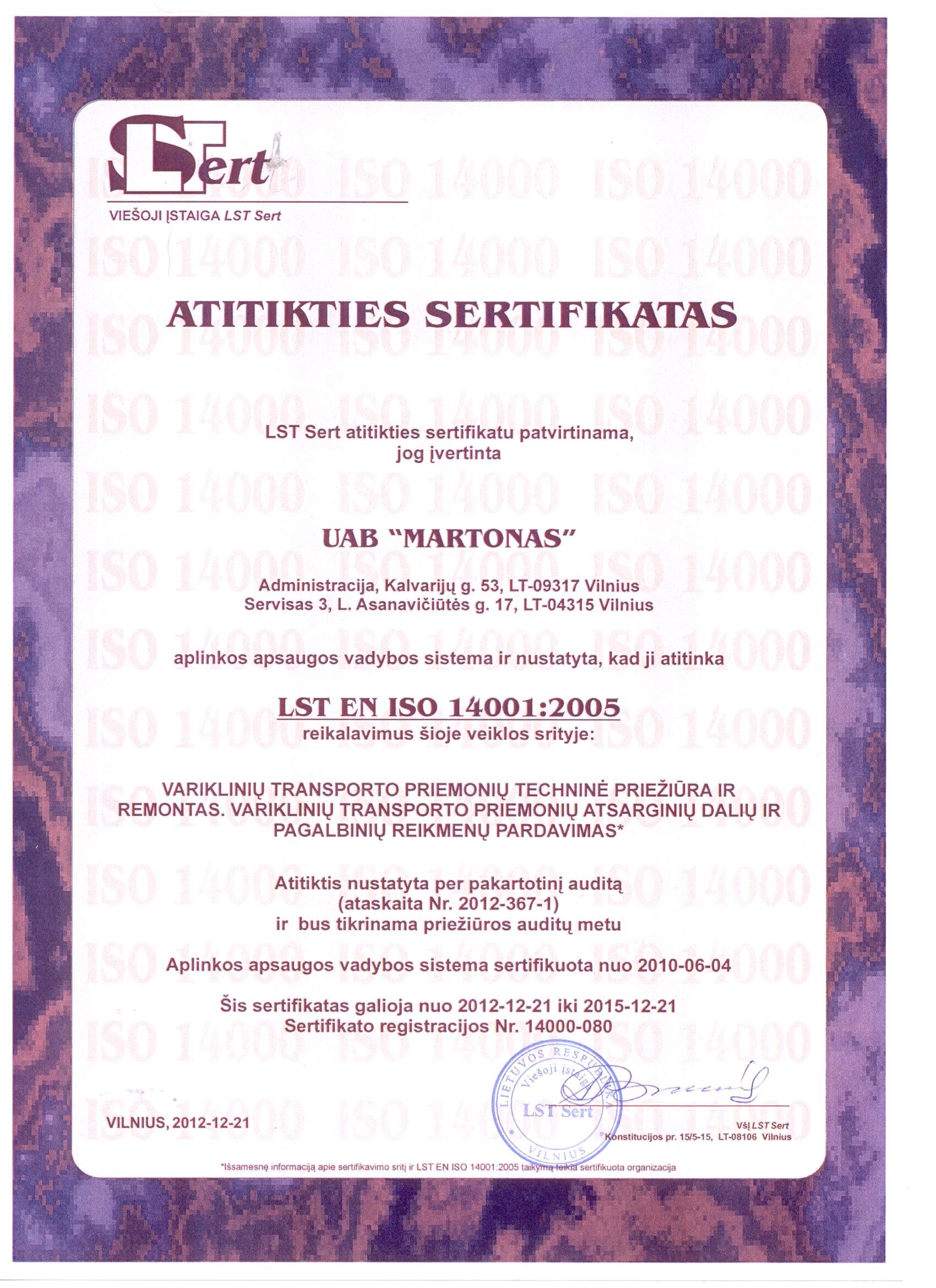 Kokybė: Vadovaudamiesi įmonėje patvirtintomis kokybės vadybos sistemos procedūromis ir siekdami užtikrinti maksimalią paslaugų kokybę, planuotais laiko tarpais atliekame teikiamų paslaugų auditą, priimame veiklos gerinimo sprendimus.Nuo 2003 m. gruodžio 22 d. įmonėje įdiegta ir veikia kokybės vadybos sistema pagal LST EN ISO 9001:2008 reikalavimus.