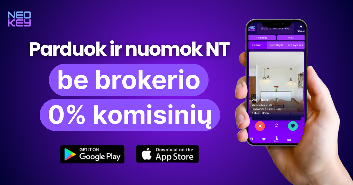 Neo Key – nekilnojamojo turto skelbimų ir paslaugų platforma, skirta savininkams, pirkėjams ir nuomininkams. Platformoje galima įkelti NT skelbimus, bendrauti be tarpininkų ir užsisakyti su pardavimu, pirkimu ar nuoma susijusias paslaugas – be komisinių ir su pilna kontrole savininko rankose. Įkelti skelbimą Neo Key platformoje visada galima NEMOKAMAI.
